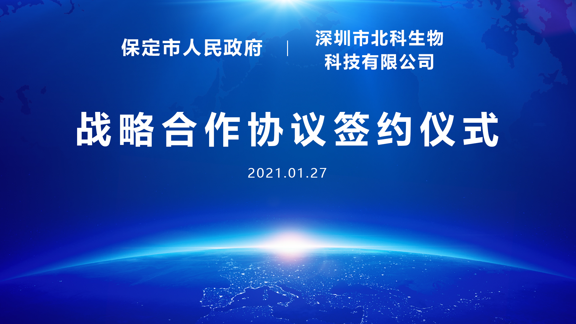 1月27日,保定市人民政府召開重點(diǎn)合作項(xiàng)目云簽約儀式,與深圳市北科生物科技有限公司(以下簡稱“北科生物”)成功簽署戰(zhàn)略合作協(xié)議。雙方將積極發(fā)揮自身資源和優(yōu)勢(shì),共同為保定打造生命健康產(chǎn)業(yè)及國家醫(yī)療中心,推動(dòng)保定產(chǎn)業(yè)升級(jí)和打造特色醫(yī)療品牌貢獻(xiàn)力量。由于疫情原因,簽約儀式在線上舉行,河北省保定市市委書記黨曉龍致辭,市長郭建英主持, 市委常委、常務(wù)副市長李國勇代表市政府與北科生物董事長胡雋源博士完成簽約。