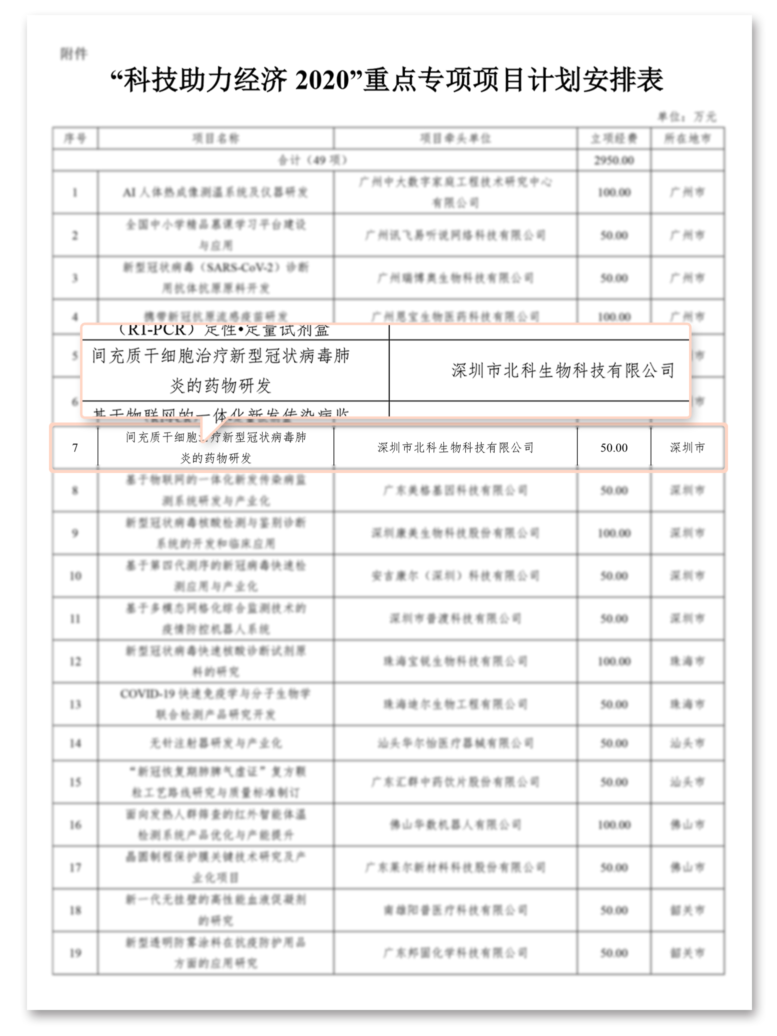 日前,由科技部支持的一批覆蓋國民經(jīng)濟主要行業(yè)的技術(shù)創(chuàng)新項目陸續(xù)“揭榜”,廣東省科技廳正式發(fā)布了《廣東省科技廳關(guān)于下達(dá)2020年“科技助力經(jīng)濟2020”重點專項項目計劃的通知》,其中深圳市北科生物科技有限公司(以下簡稱“北科生物”)牽頭的《間充質(zhì)干細(xì)胞治療新型冠狀病毒肺炎的藥物研發(fā)》成功入選,獲“廣東省科技助力經(jīng)濟2020”重點專項推薦項目。