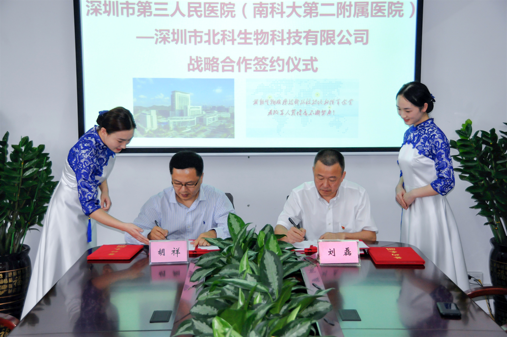 2019年5月28日,北科生物與深圳市第三人民醫(yī)院聯(lián)合舉行了細(xì)胞治療及臨床研究戰(zhàn)略合作簽約儀式。深圳市第三人民醫(yī)院院長劉磊、深圳市北科生物科技有限公司董事長胡祥等多位領(lǐng)導(dǎo)、嘉賓出席了此次的簽約儀式。