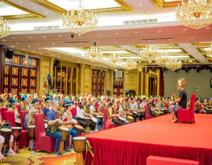初始,在無(wú)言的敲打演奏中,每位北科人皆特立獨(dú)行,樂(lè)章零落散碎,主持人便提出北科多年來(lái)在細(xì)胞領(lǐng)域堅(jiān)持的三個(gè)關(guān)鍵詞“專(zhuān)心、專(zhuān)業(yè)、專(zhuān)注”以勵(lì)大家,無(wú)論何時(shí)、何地、何事,身為北科一份子,北科人都應(yīng)上下一心、和而不同,在共同的目標(biāo)面前,所有人放下自己的身份、地位,只為實(shí)現(xiàn)在北科生物十三周年慶的今日,為它送上一曲誠(chéng)摯的生日祝福。最后,在主持人耐心的引領(lǐng)下,在場(chǎng)的300余位北科人統(tǒng)一節(jié)奏、鼓點(diǎn),為北科生物13周年慶典送上一曲慷慨激昂的音樂(lè)祝福!