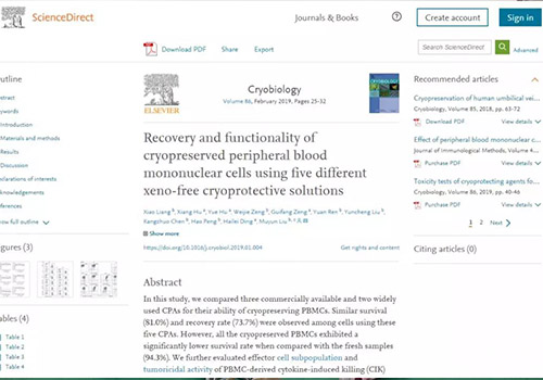 2019年1月,北科生物技術(shù)團(tuán)隊(duì)在SCI期刊《Cryobiology》上發(fā)表論文,文章探討不同的凍存液對(duì)免疫細(xì)胞的冷凍保護(hù)效果,旨在開(kāi)展無(wú)血清凍存液的研究項(xiàng)目,血清成分復(fù)雜且異源血清易引發(fā)免疫排異反應(yīng),因此無(wú)血清凍存液能為客戶(hù)提供更加安全的免疫細(xì)胞儲(chǔ)存和應(yīng)用。北科生物在細(xì)胞制備與儲(chǔ)存的每一個(gè)工藝節(jié)點(diǎn)都反復(fù)驗(yàn)證和不斷優(yōu)化,始終堅(jiān)持用科學(xué)承諾質(zhì)量。