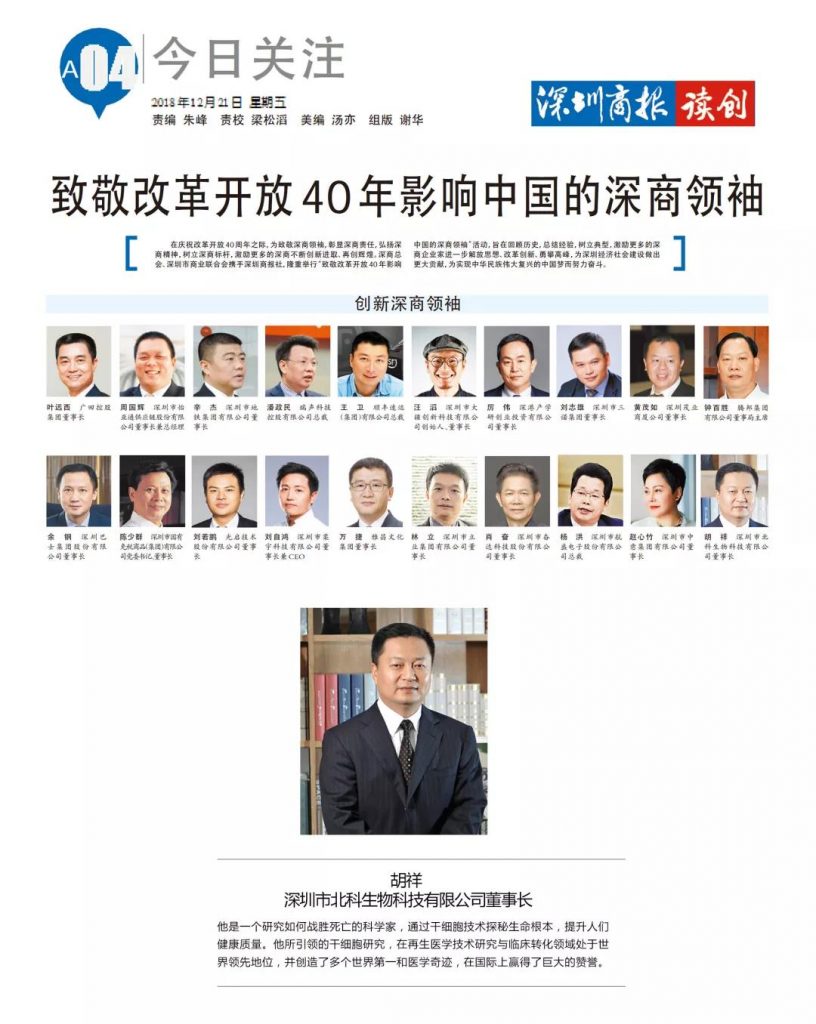 2019年1月14日,北科生物董事長(zhǎng)胡祥博士參加第五屆深商全球大會(huì)頒獎(jiǎng)盛典,榮獲2018年“第十一屆深商風(fēng)云人物”
